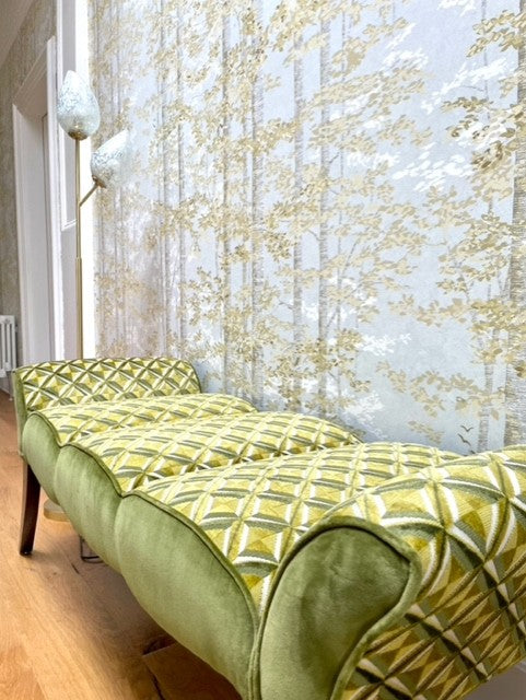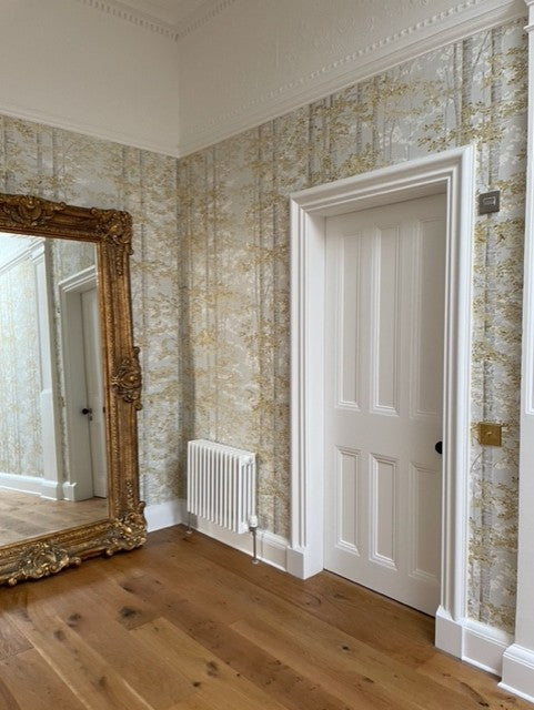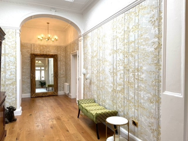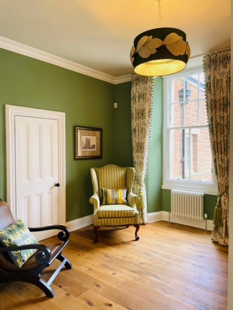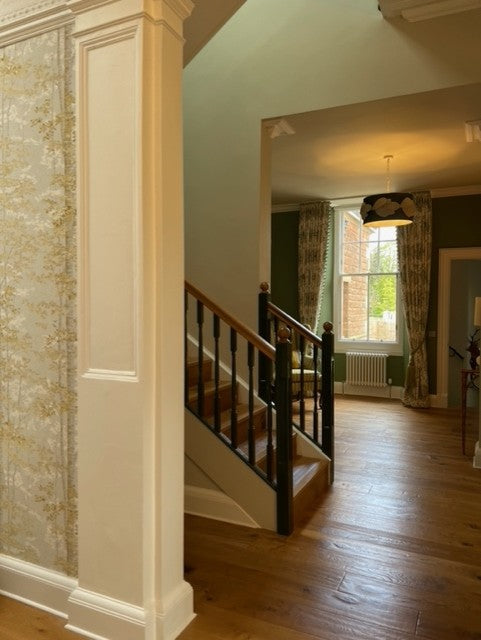 A newly developed historical building, we started with stark white walls. Sourcing wallpaper and adding injections of colour has brought this home to life.